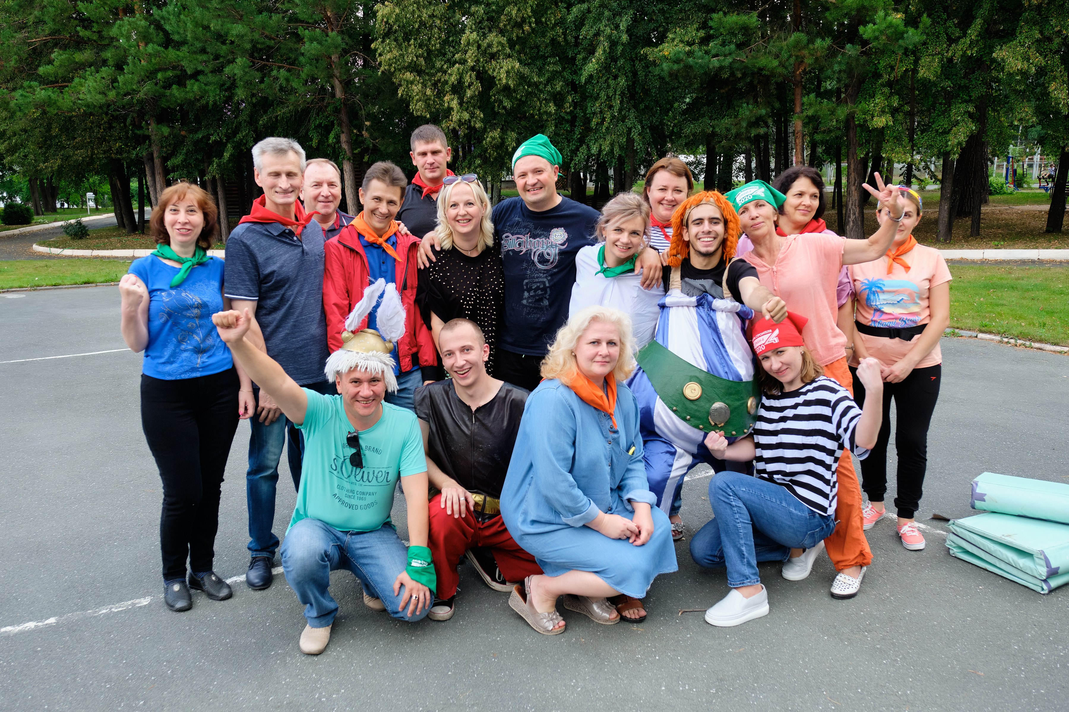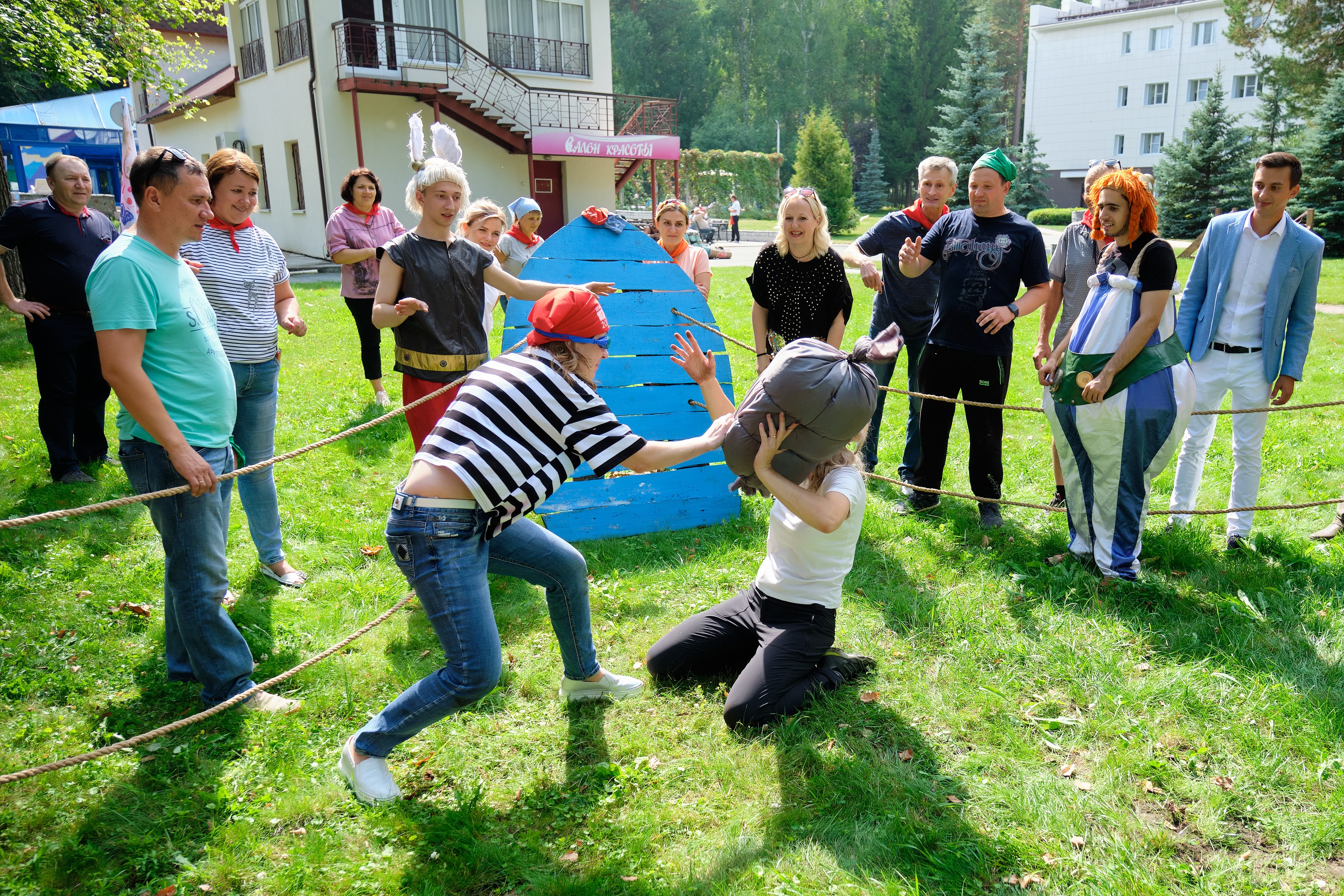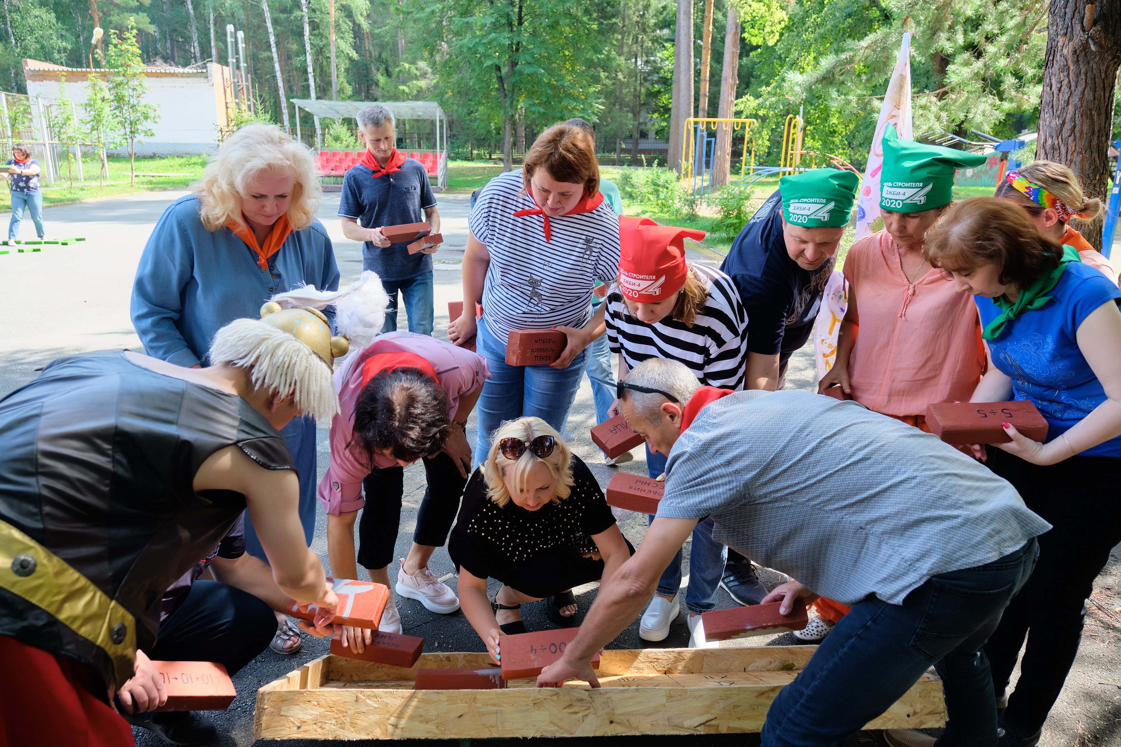 А в субботу заводчане дружным строем двинулись на празднование Дня строителя. Погода в субботу была отличная, ярко светило солнце, поэтому праздник по традиции провели на природе, где всех гостей встречали Астерикс и Обеликс, подготовившие для них развлекательные мега-конкурсы с головоломками, борьбой, а также упражнения на ловкость и смекалку.