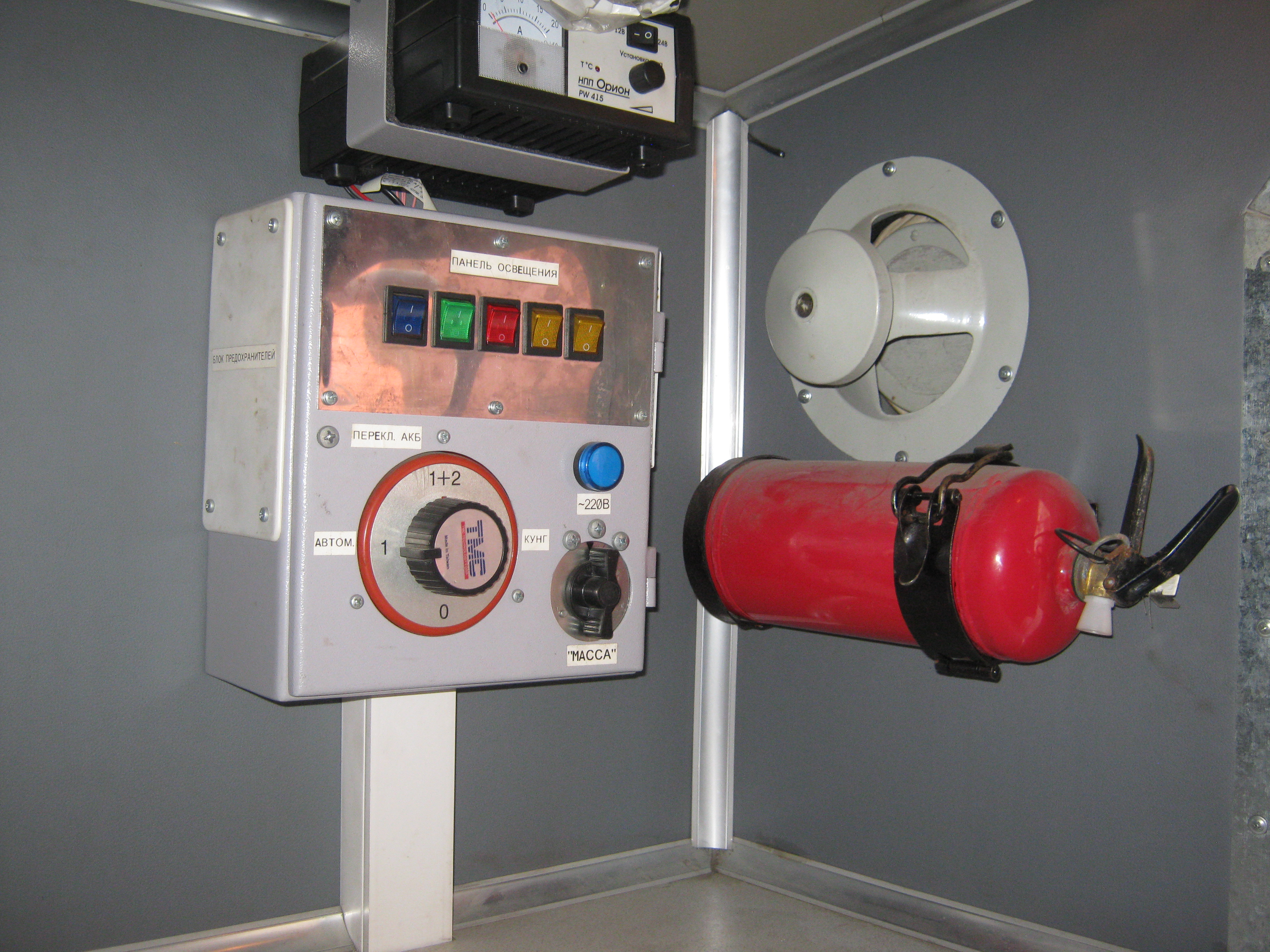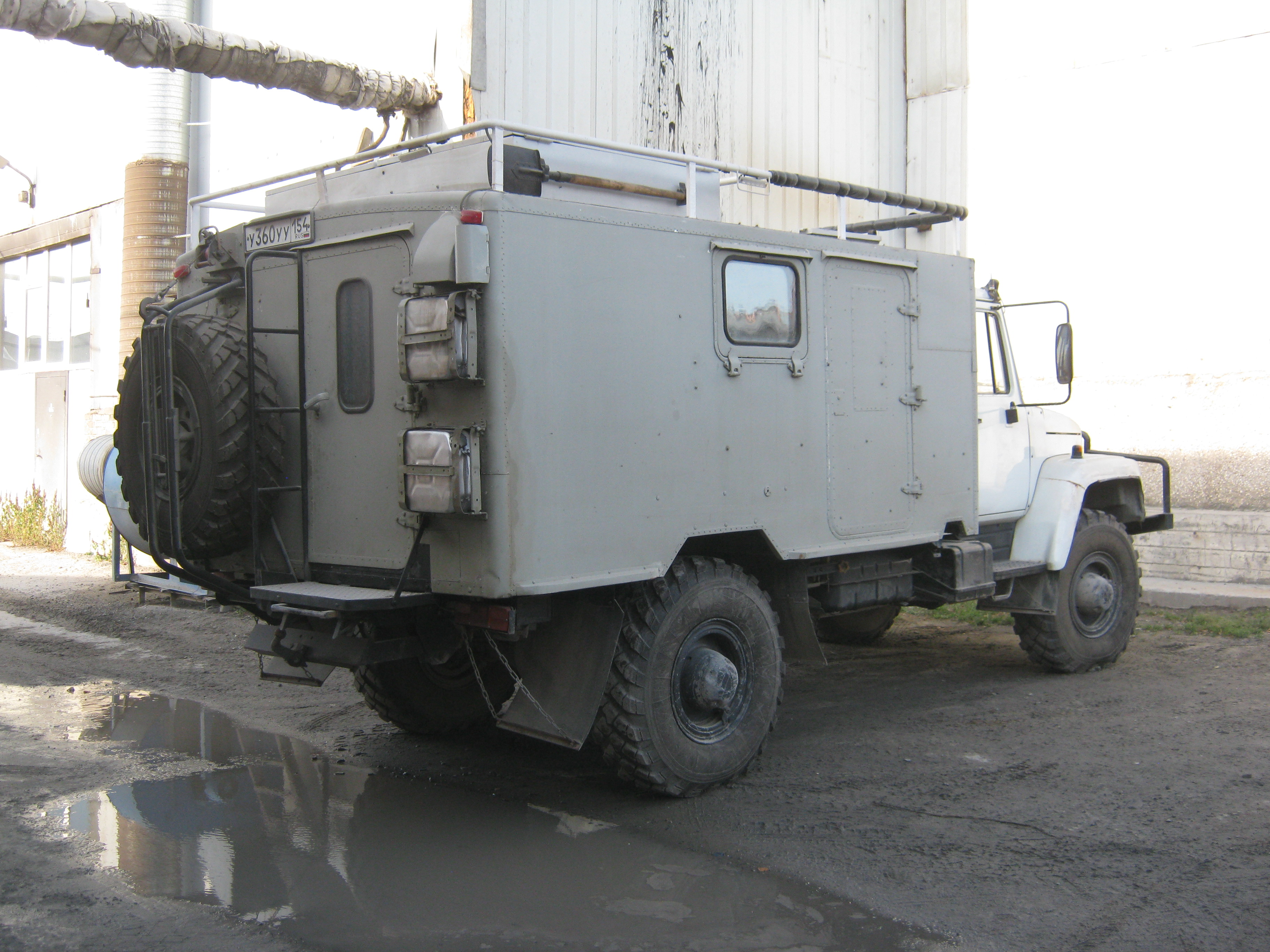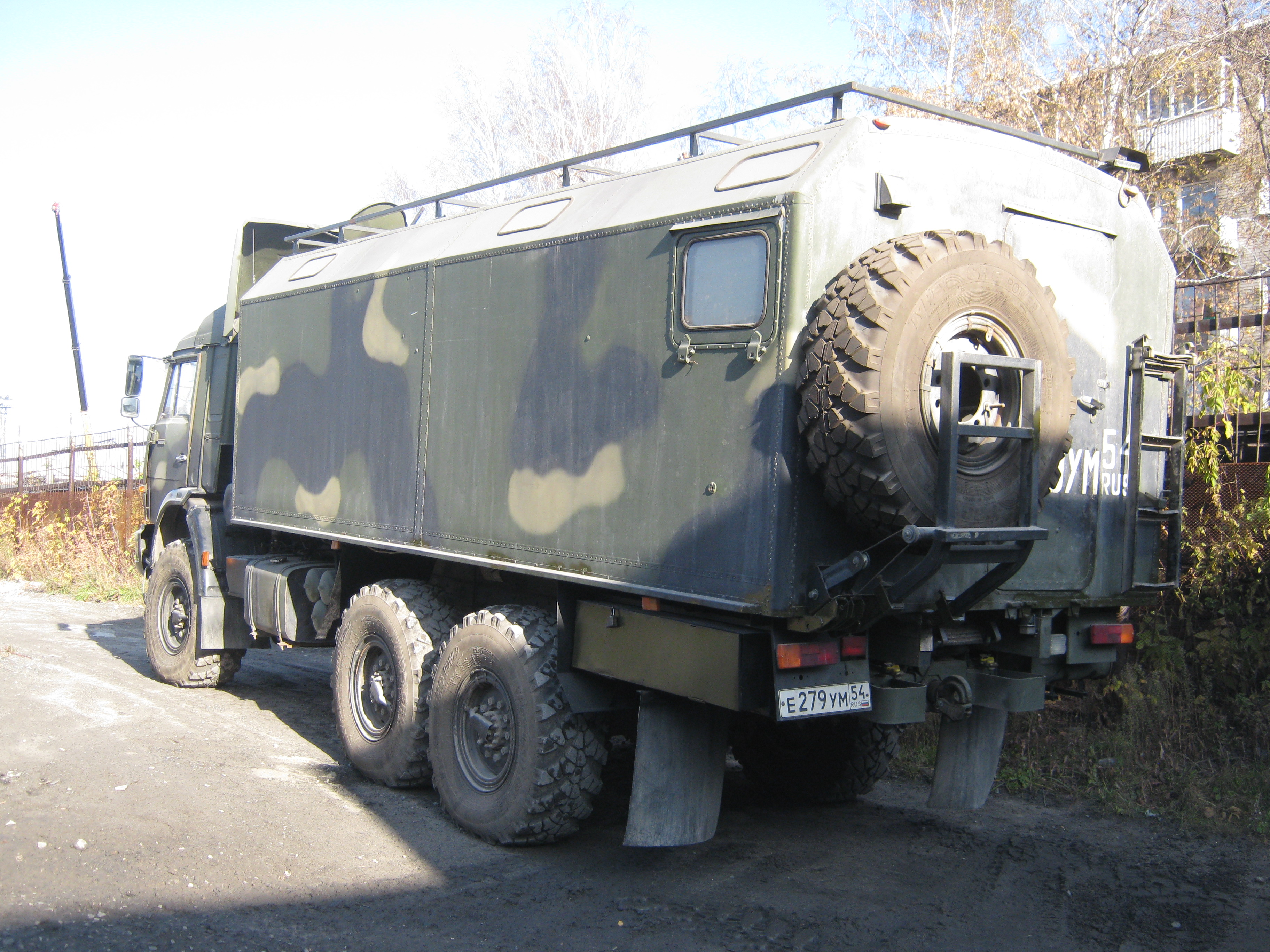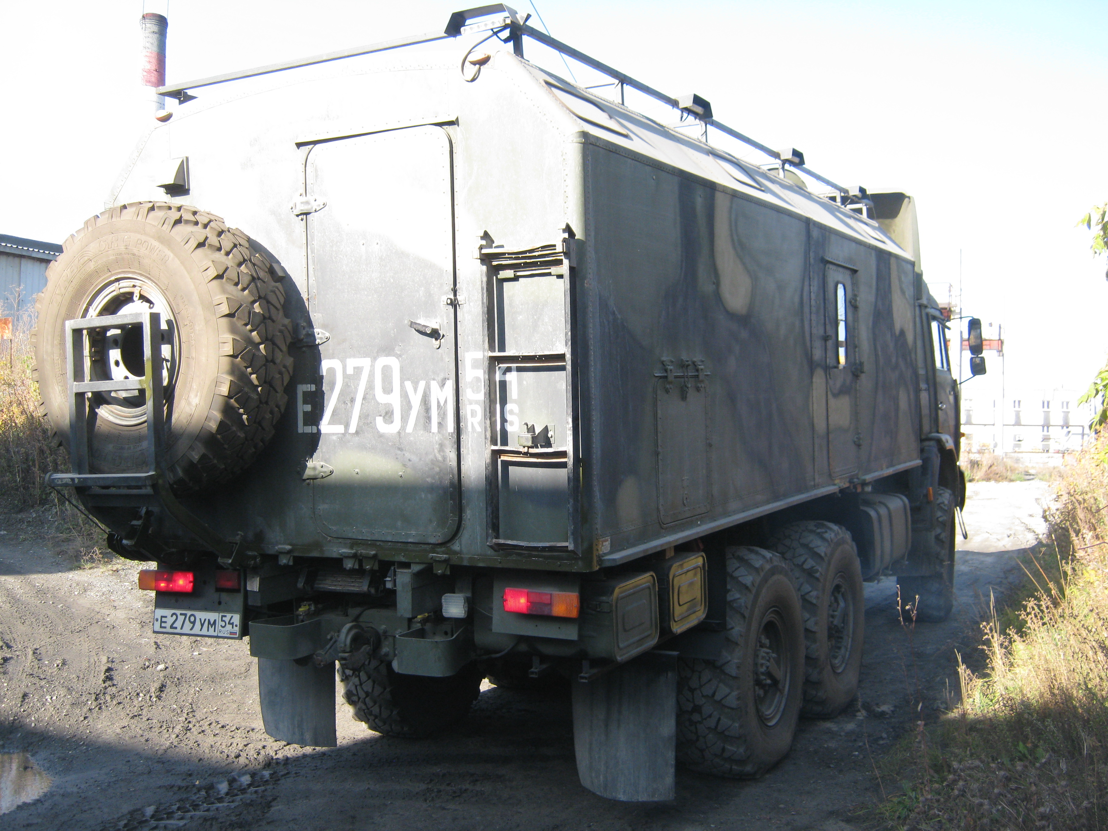 Кунг переоборудован в специализированной мастерской и имеет: тепло-шумо изоляцию, отделку салона из качественной кожи, два люка, два открывающихся окна, раздельное освещение салона, два отопителя «Webasto», бак для воды на 130 литров, электростанция мощностью 2 кВт, отсек для дополнительных аккумуляторов с отдельной подзарядкой от электростанции. На крыше имеется вместительный ящик для инвентаря и вещей.