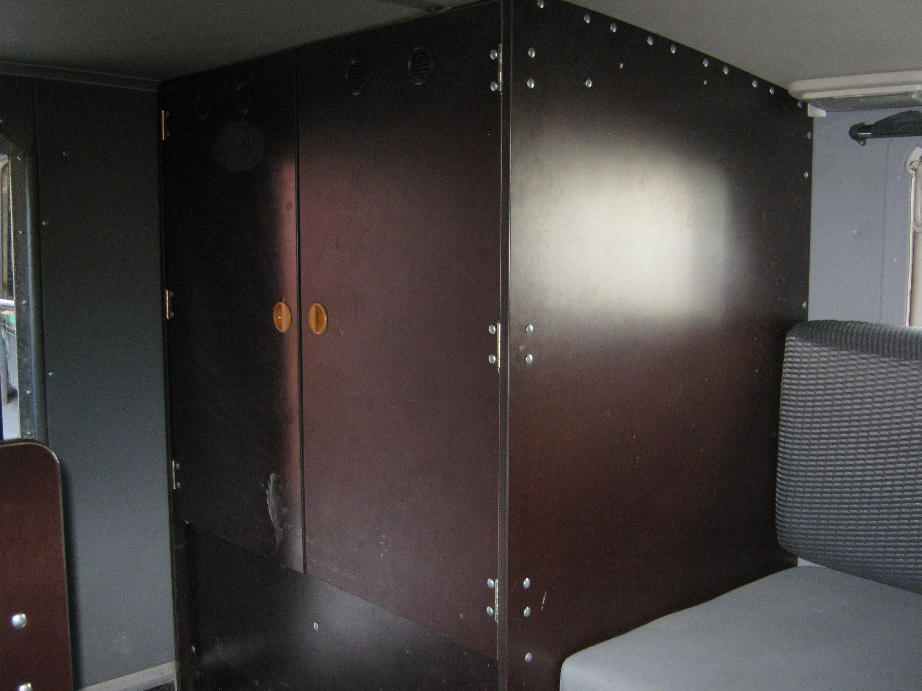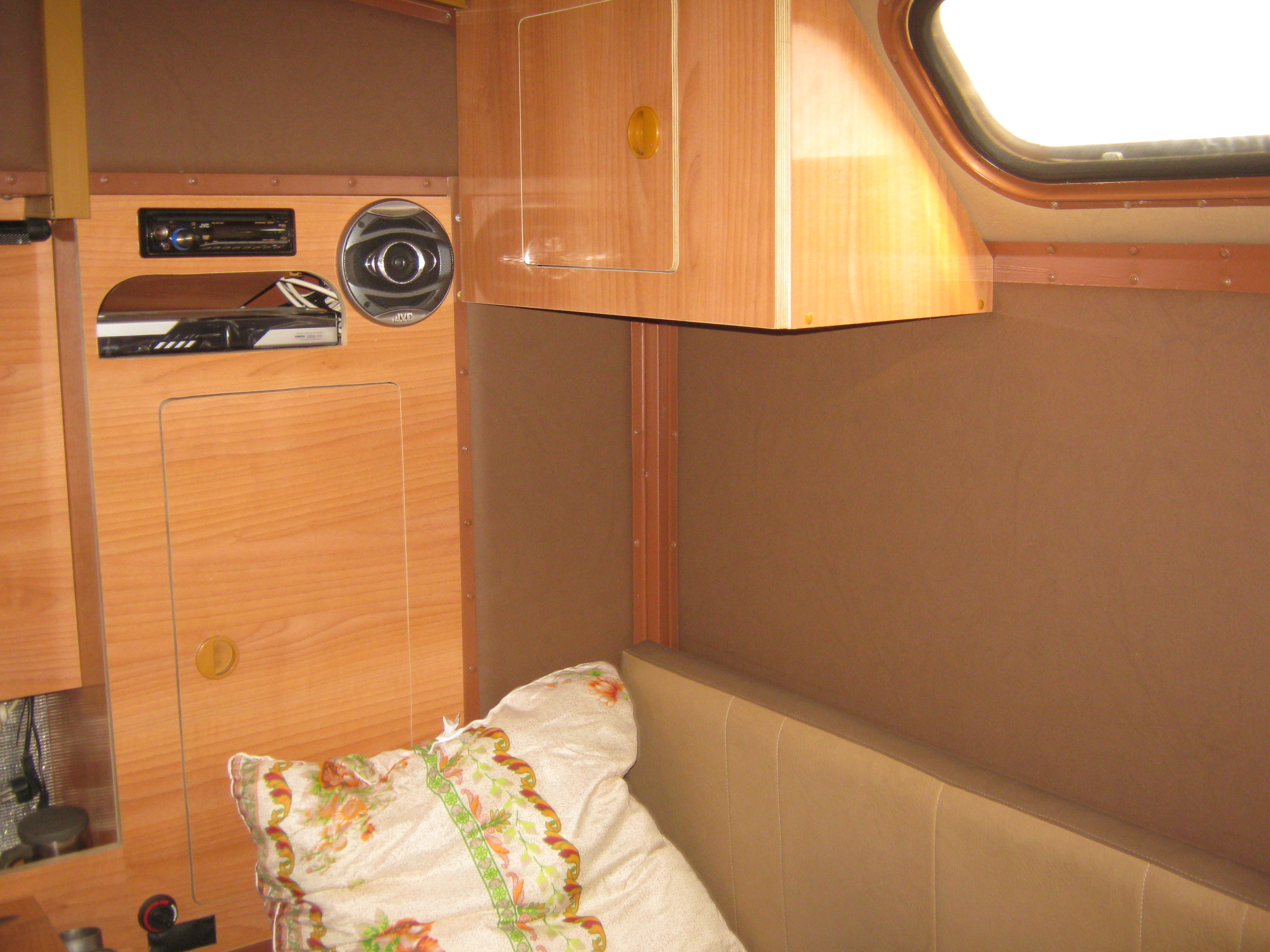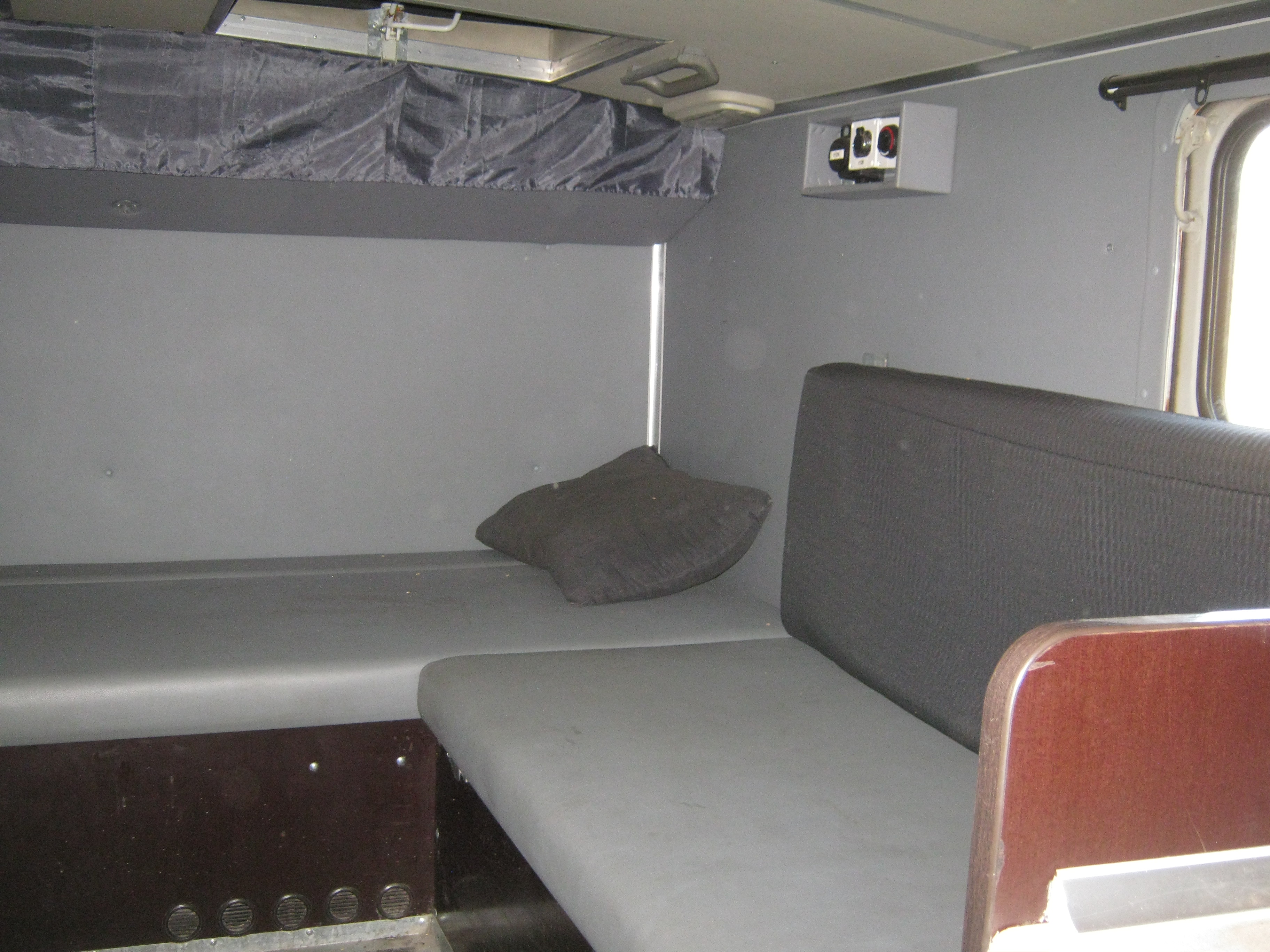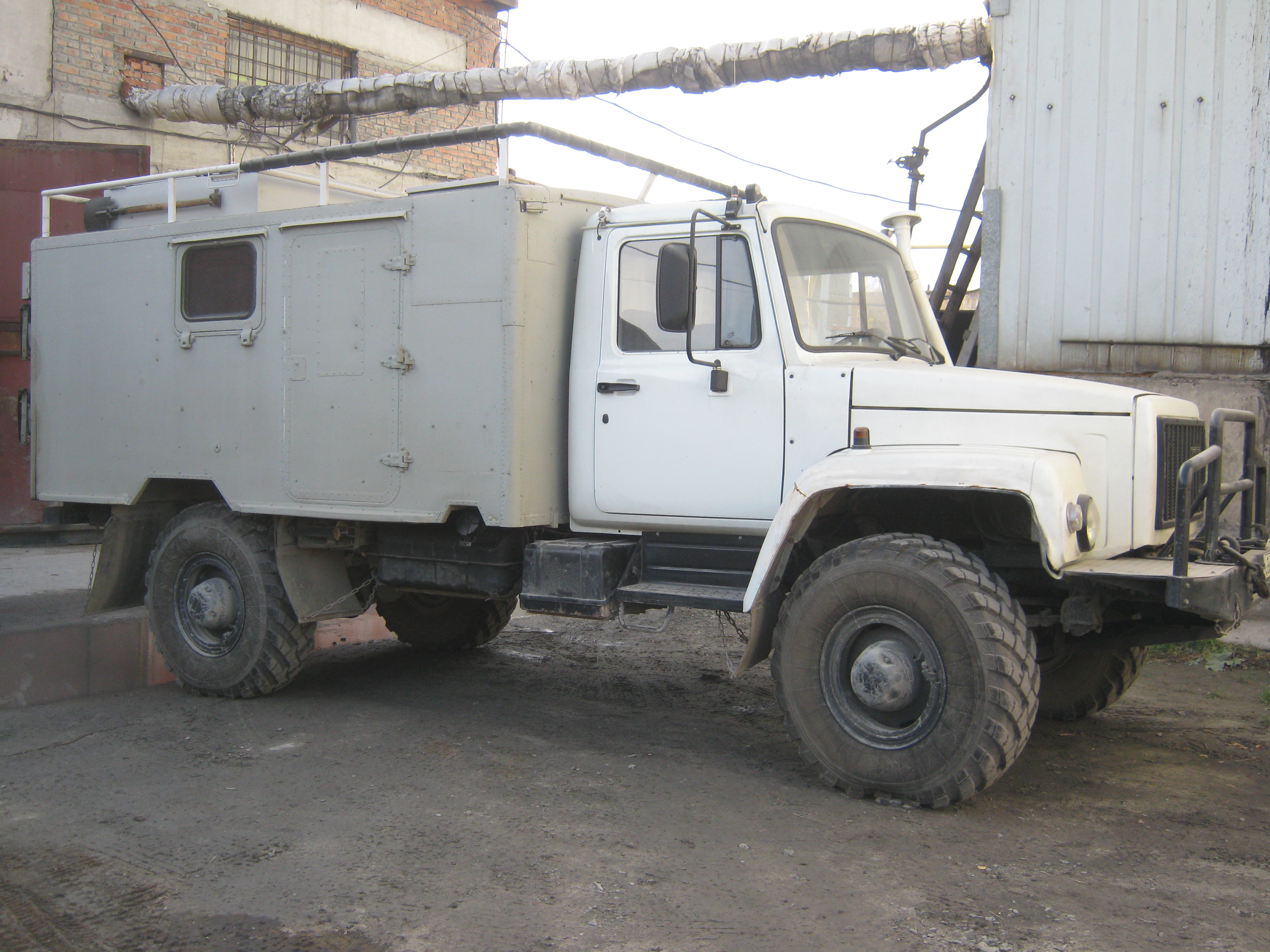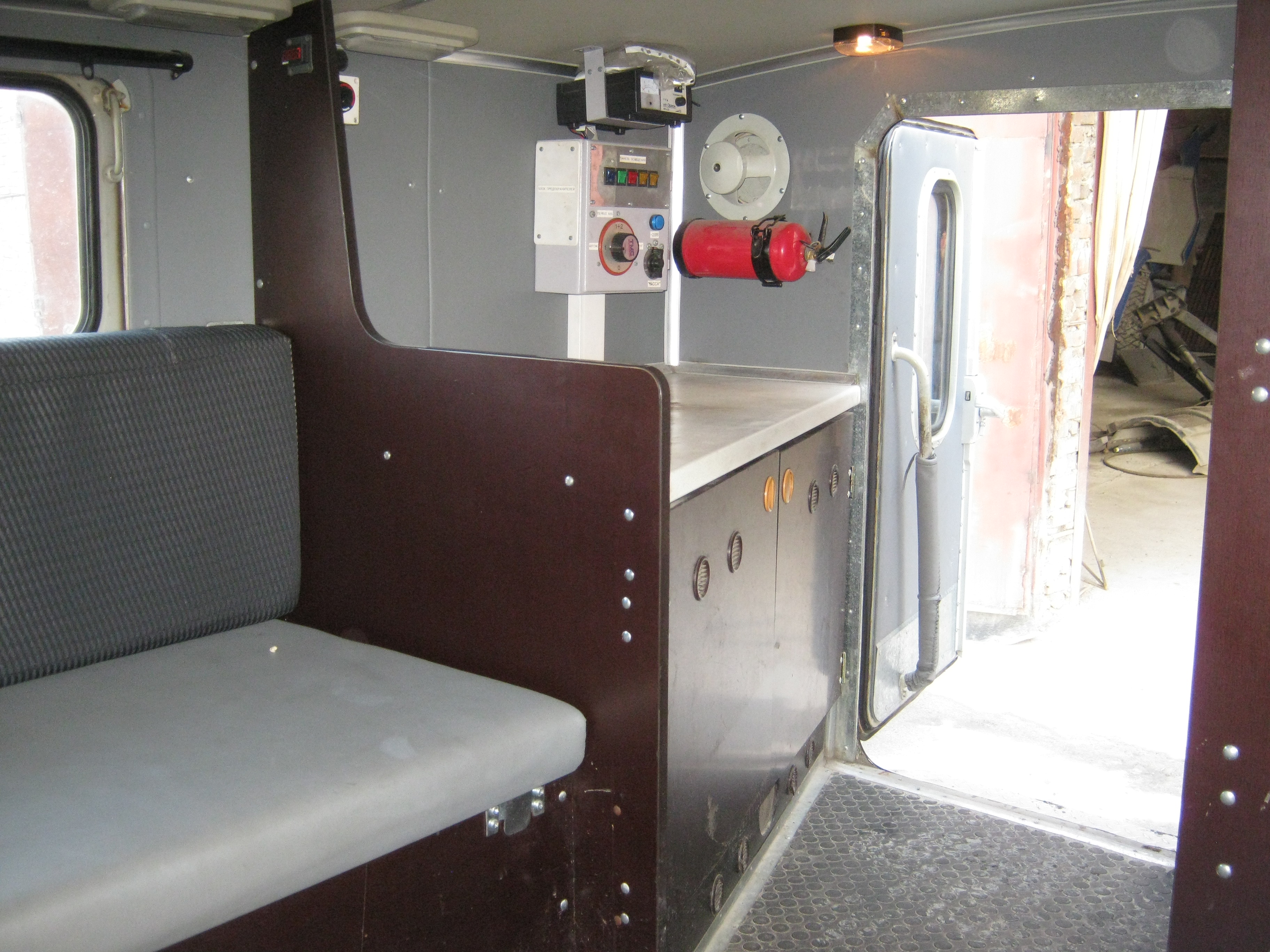 Кунг переоборудован в специализированной мастерской и имеет: тепло-шумо изоляцию, отделку салона из качественной кожи, два люка, два открывающихся окна, раздельное освещение салона, два отопителя «Webasto», бак для воды на 130 литров, электростанция мощностью 2 кВт, отсек для дополнительных аккумуляторов с отдельной подзарядкой от электростанции. На крыше имеется вместительный ящик для инвентаря и вещей.