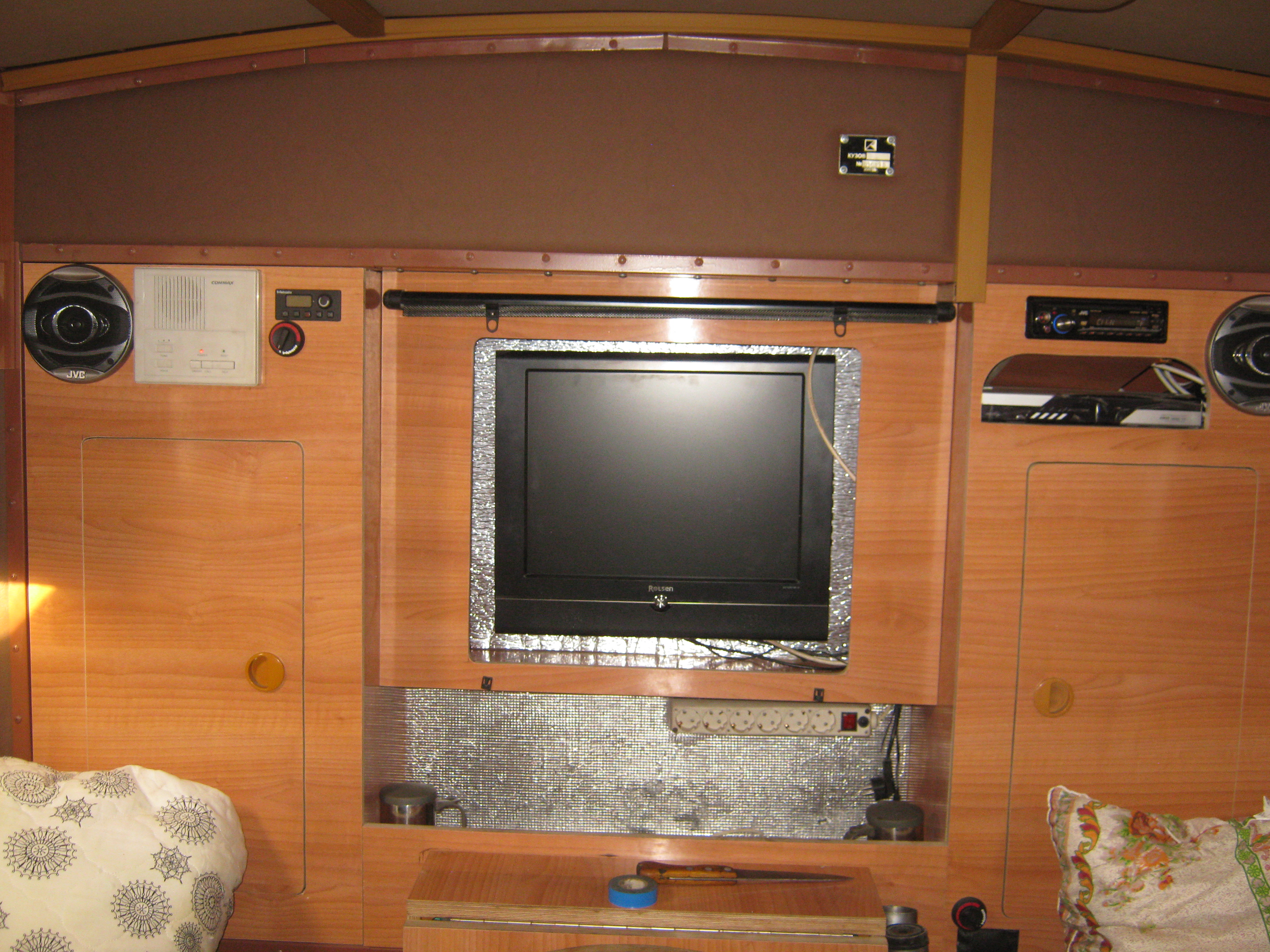 Кунг оборудован восьмью спальными местами, спутниковой антенной, телевизором, аудиосистемой, газовой печью, баком под воду (500 литров) с подогревом и электронасосом, автономной электростанцией, холодильником. Установлены два отопителя "Webasto".