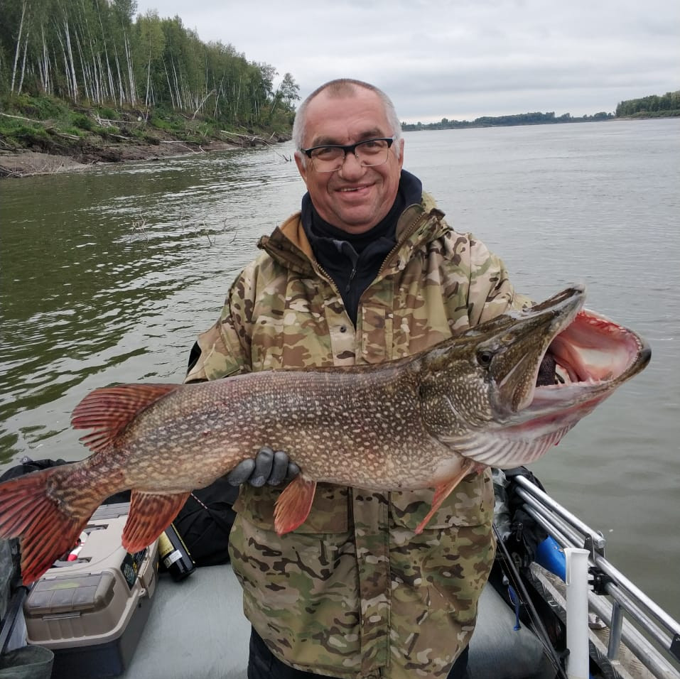 На снимках: Николай Мочалин с 15-килограммовой щукой, Иван Марейчев со своим 13-килограммовым уловом, Тарас Рубцов с представителем семейства карповых и Сергей Арефьев со своей добычей.